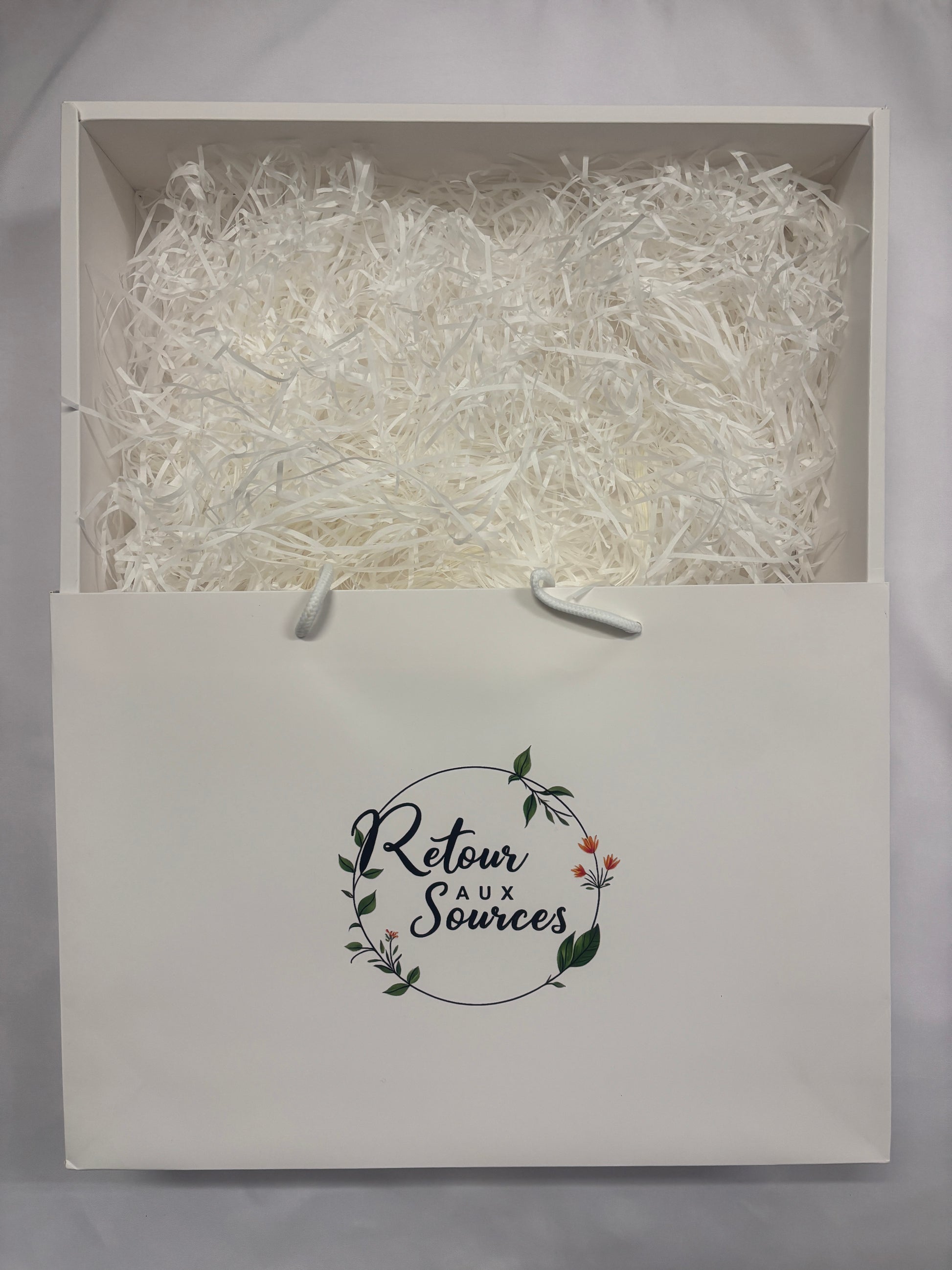 Ajoutez notre élégant sac coffret cadeau à votre commande pour une présentation parfaite.